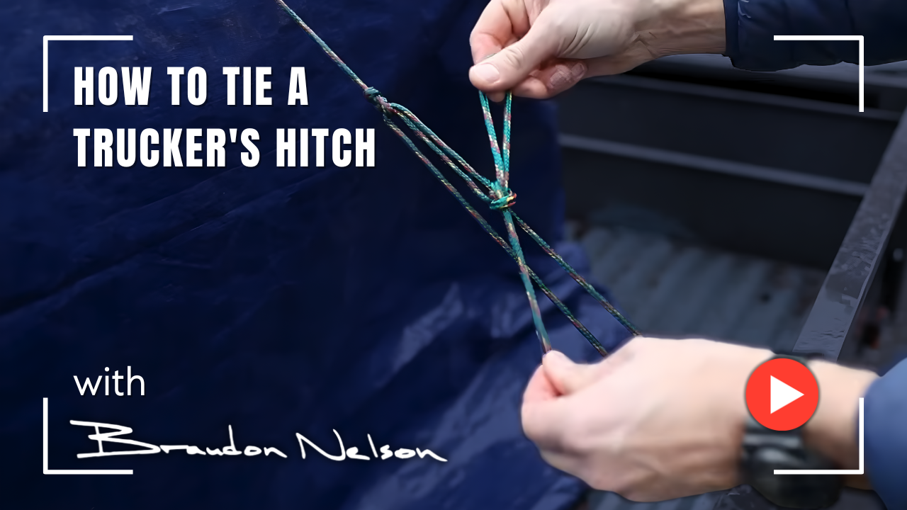 Hey everyone Brandon Nelson and in one minute I'm going to show you the two knots you need to know to tie down any load here's how most people tie the first knot they put the Rope through and then they just start making Tangles until it looks like something that won't come undone and they hope for the best now here's how you should be doing it this knot is called a GE Now watch what I do here I'm going to come from underneath bring some of the Rope back then pinch it with my fingers fold this end over now I'm going to wrap it twice around those two lines and put a loop through and that's it then I'm going to pull it tight against the trailer we've got our hitch over there so we come across the top of the load and then again what most people do is pull as tight as they can and then make some new Tangles and hope for the best all right but here's what we're going to do we're going to tie what's called a Trucker's Hitch all right take the end of the rope and pass it underneath again and then we're going to come back up to real close to the load grab some of this rope make three twists okay then we're going to pull a loop through that Loop is now like a pulley for us now we take the end of our rope and come through that Loop we've got a 3 to one mechanical advantage where we can really pull it tight we've got it super tight I'm just going to pinch right here and make a half hitch and the last step is to take that end and put another half inch on it to lock it now here's the best part when you're all done watch how smoothly these knots come apart for the Trucker's Hitch we take that lock off then we pull the first Loop pull our rope through pull the second Loop now back to our first knot same thing you just take that tail pull it knot comes right out this has been Brandon Nelson for 1 minute I'll see you next time what do you want to learn in one minute comment below or email me at Brandon@Brandonnelson.com.